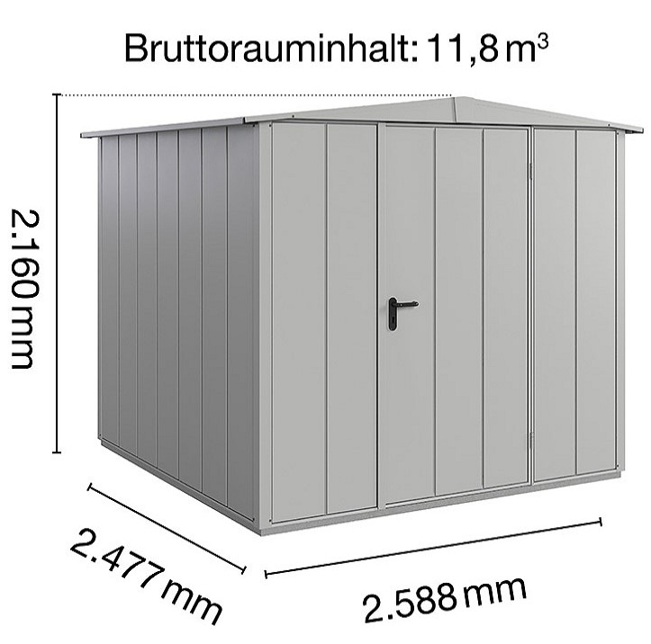 Hörmann Berry-Gerätehaus Classic-S, Typ 2 – Satteldach, Fenstergrau (B 258,8 x H 216 x T 247,7 cm)