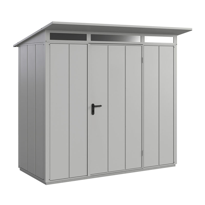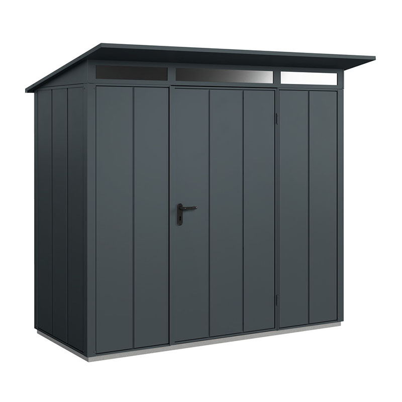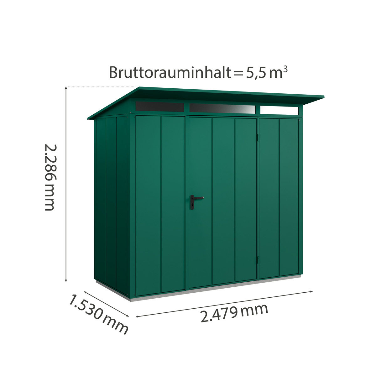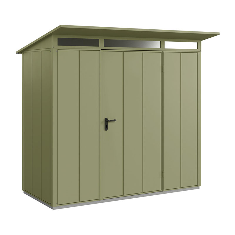 Produktinformationen "Hörmann Berry-Gerätehaus Modern-P, Typ 1 mit Pultdach, B 247,9, H 228,6, T 153 cm, Moosgrün"