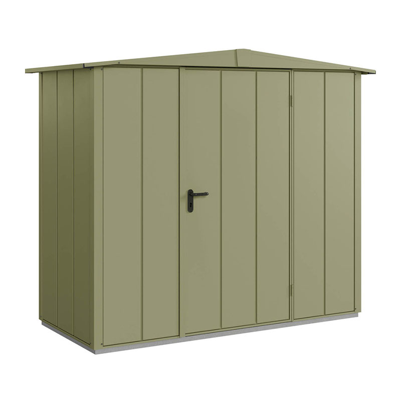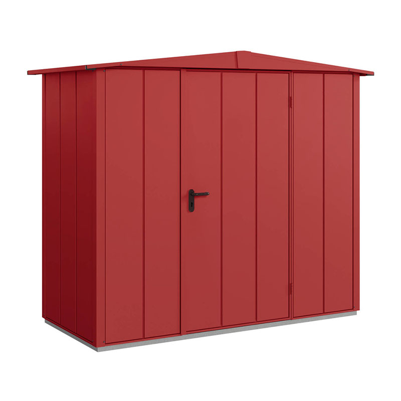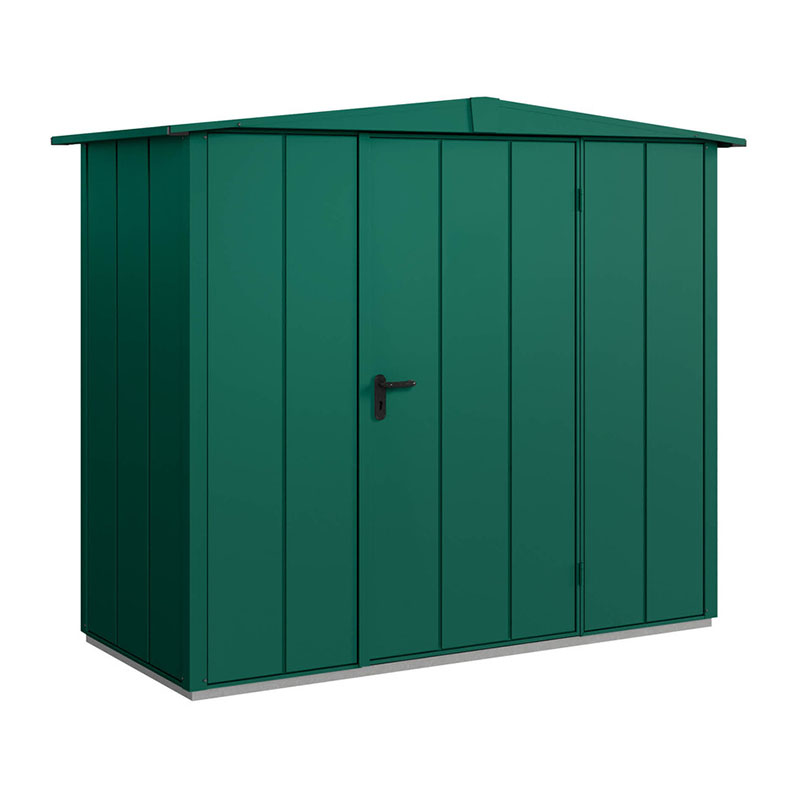 Das Hörmann Berry-Gerätehaus Modern-S, Typ 1 mit elegantem Satteldach in der Farbe Taubenblau bietet auf kompaktem Raum viel Platz für Gartengeräte, Fahrräder und Zubehör. Mit den Abmessungen 258,8 x 216 x 121,3 cm passt es auch in kleinere Gärten und überzeugt durch seine moderne Optik mit markantem Berry-Profil. Die pulverbeschichtete Oberfläche und die stabile Konstruktion aus Stahl und Aluminium garantieren Langlebigkeit und zuverlässigen Wetterschutz.