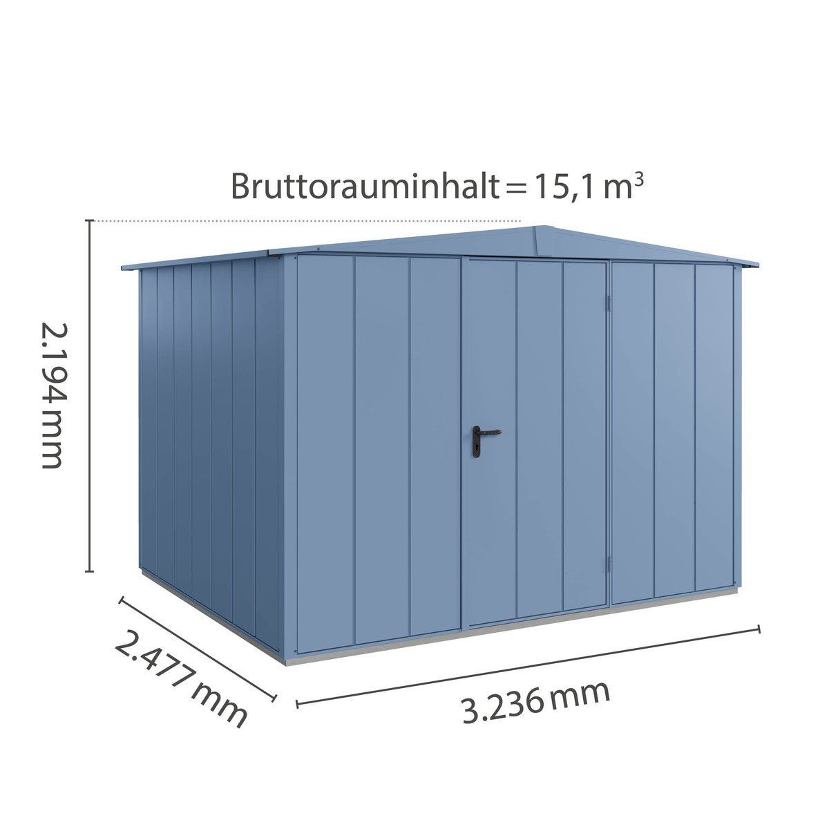 Produktinformationen "Hörmann Berry-Gerätehaus Modern-S, Typ 3 mit Satteldach, B 323,6, H 219,4, T 247,7 cm, Taubenblau"