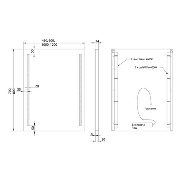 | Lichtstreifen | 2 × satiniert, 700 × 20 mm, senkrecht |