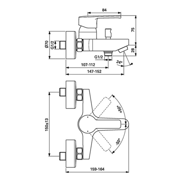- 152 mm Ausladung: Angenehme Reichweite für Dusche und Wannenfüllung.
