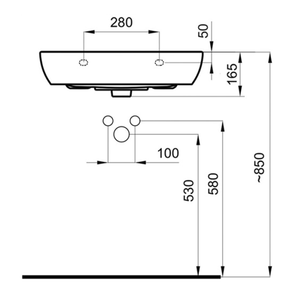 Produktinformationen "delphis living Waschtisch 1 Hahnloch. mit Überlauf 550x450mm weiß"