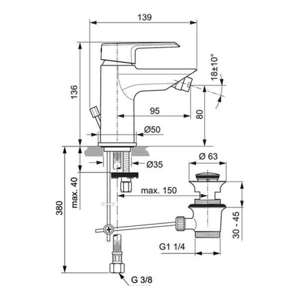 delphis unic Bidet-Einhandmischer – Chrom, 95 mm Ausladung, mit Zugknopf-Ablaufgarnitur