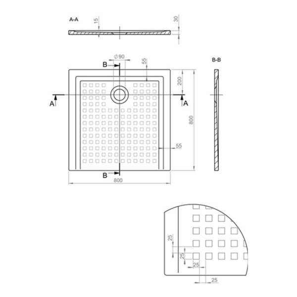 delphis unic Quadrat Duschwanne Mineralg. m AR 800x800x30mm we