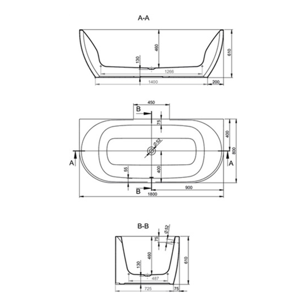 - Großzügige Tiefe von 460 mm: Für besonders komfortables Baden.