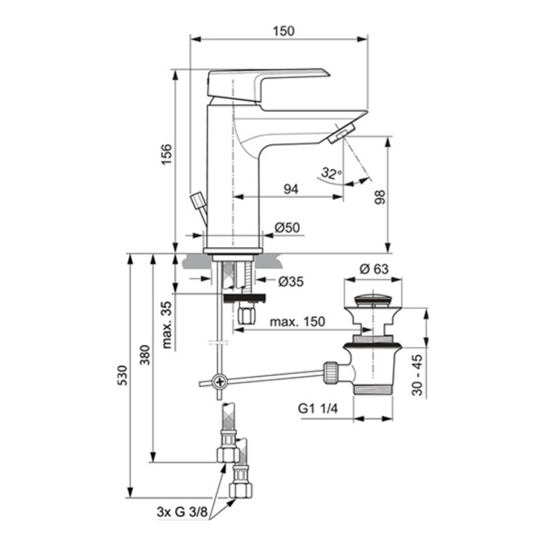 - Ausladung 94 mm: Optimal für kompakte und mittlere Waschtische.